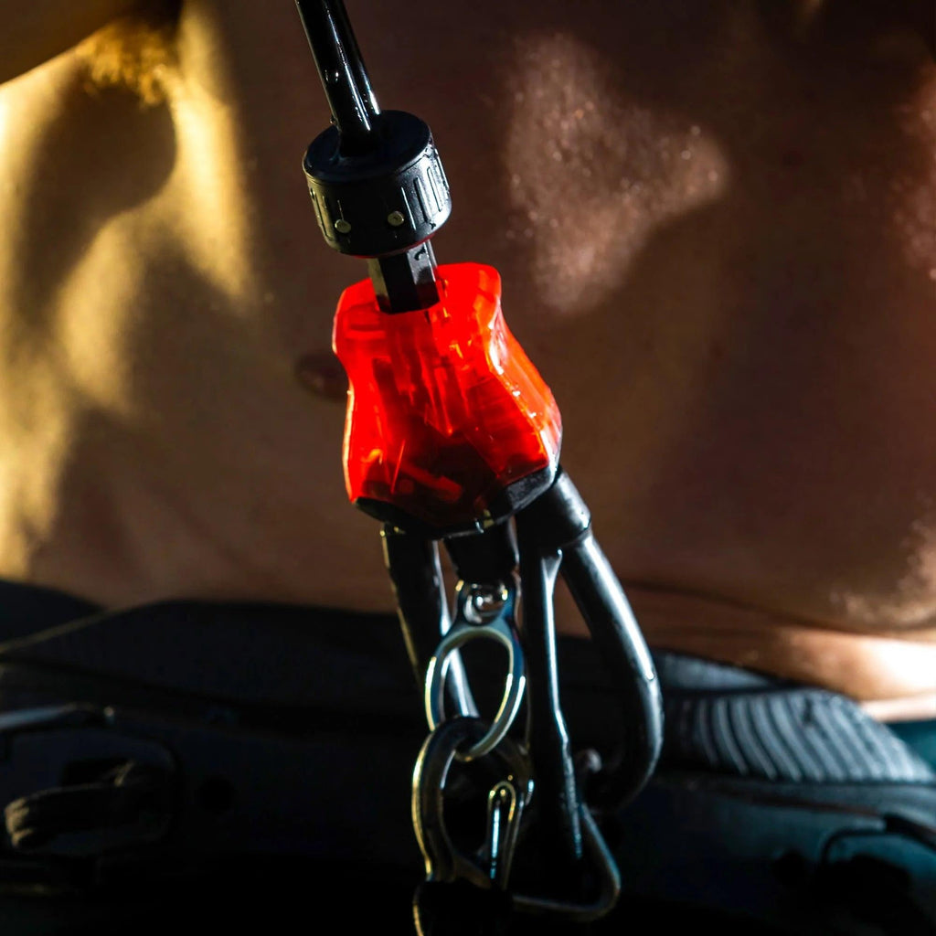 SLIMTRIM DEPOWER CLEAT Slingshot retooled and redesigned their depower cleat to be thinner and lower profile, providing a clutter-free, optimized field of view in a simple and easy to use package. Utilizing a stainless-steel clam cleat, SlimTrim provides immediate on- the-fly adjustments to a kite's power and angle of attack.